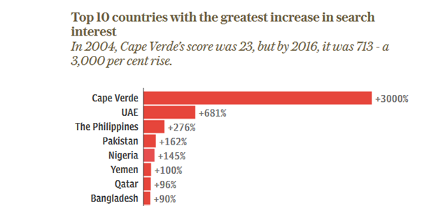 CABO VERDE REGISTA UM AUMENTO DE 3000% EM PESQUISAS NO GOOGLE DESDE 2004